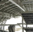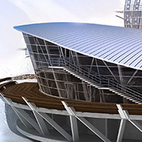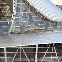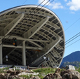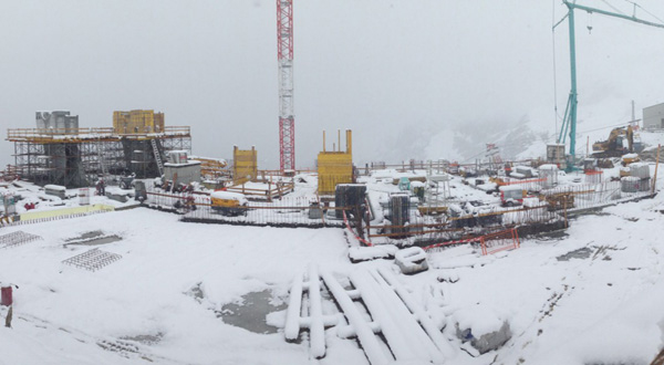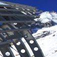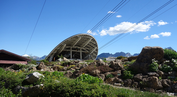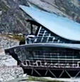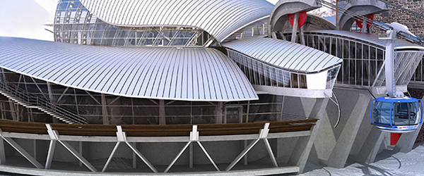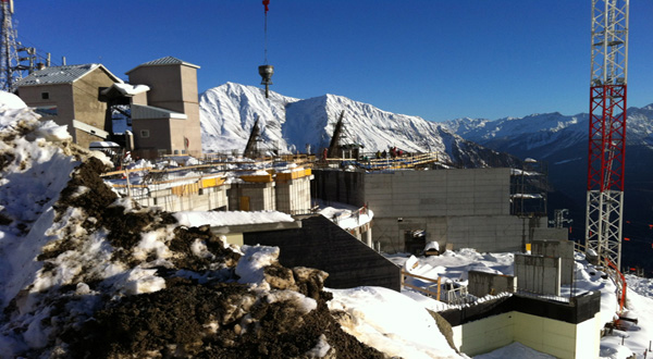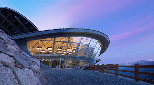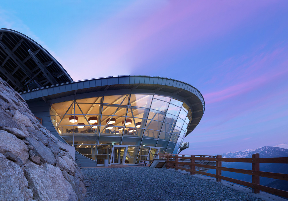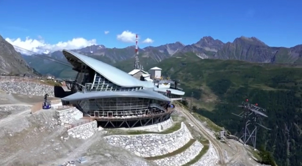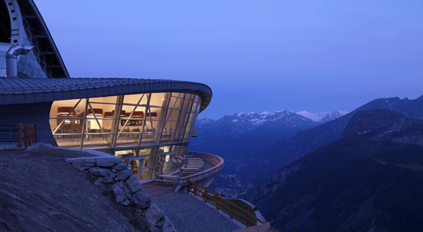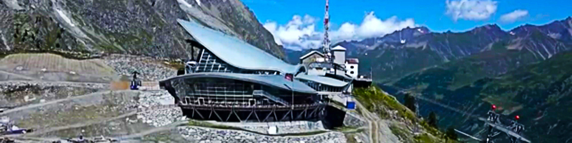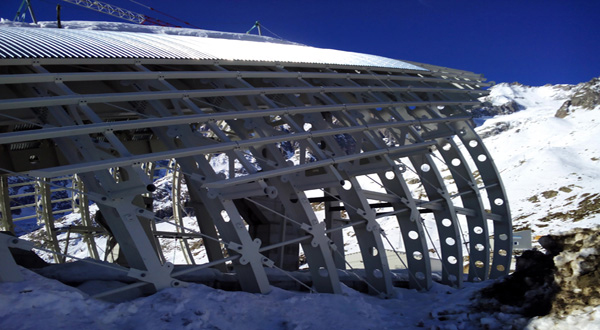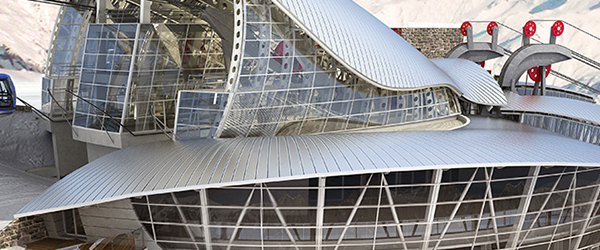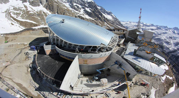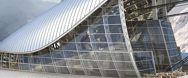 Vista della stazione a Punta Helbronner, interamente rivestita da una pelle in zinco-titanio.