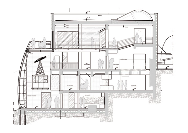 Destinazione d'uso locali principali: locali tecnici funiviari e accessori, piani di imbarco del 1° e 2° tronco, spazi commerciali, sala ristorante, bar, sala multimediale da 97 posti (cinema/sala conferenze), terrazze panoramiche, due residenze di servizio.