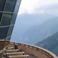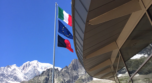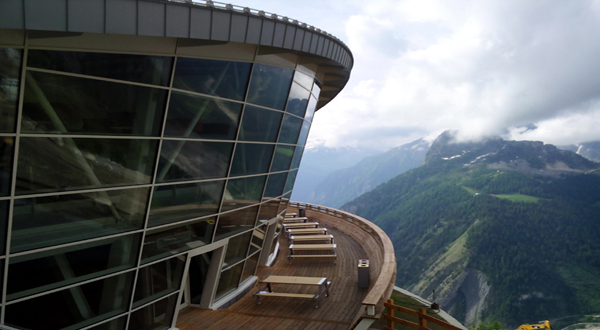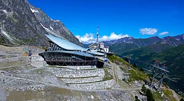 A Helbronner si affacciano due terrazze panoramiche, una a livello del piano imbarco e una in copertura che consente una vista a 360ツコ.