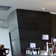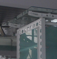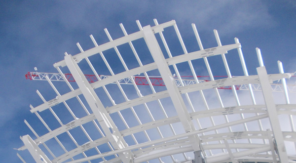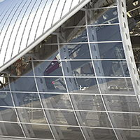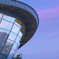 Volumi in vetro aggettanti sul vuoto, ricordano i cristalli di quarzo.
