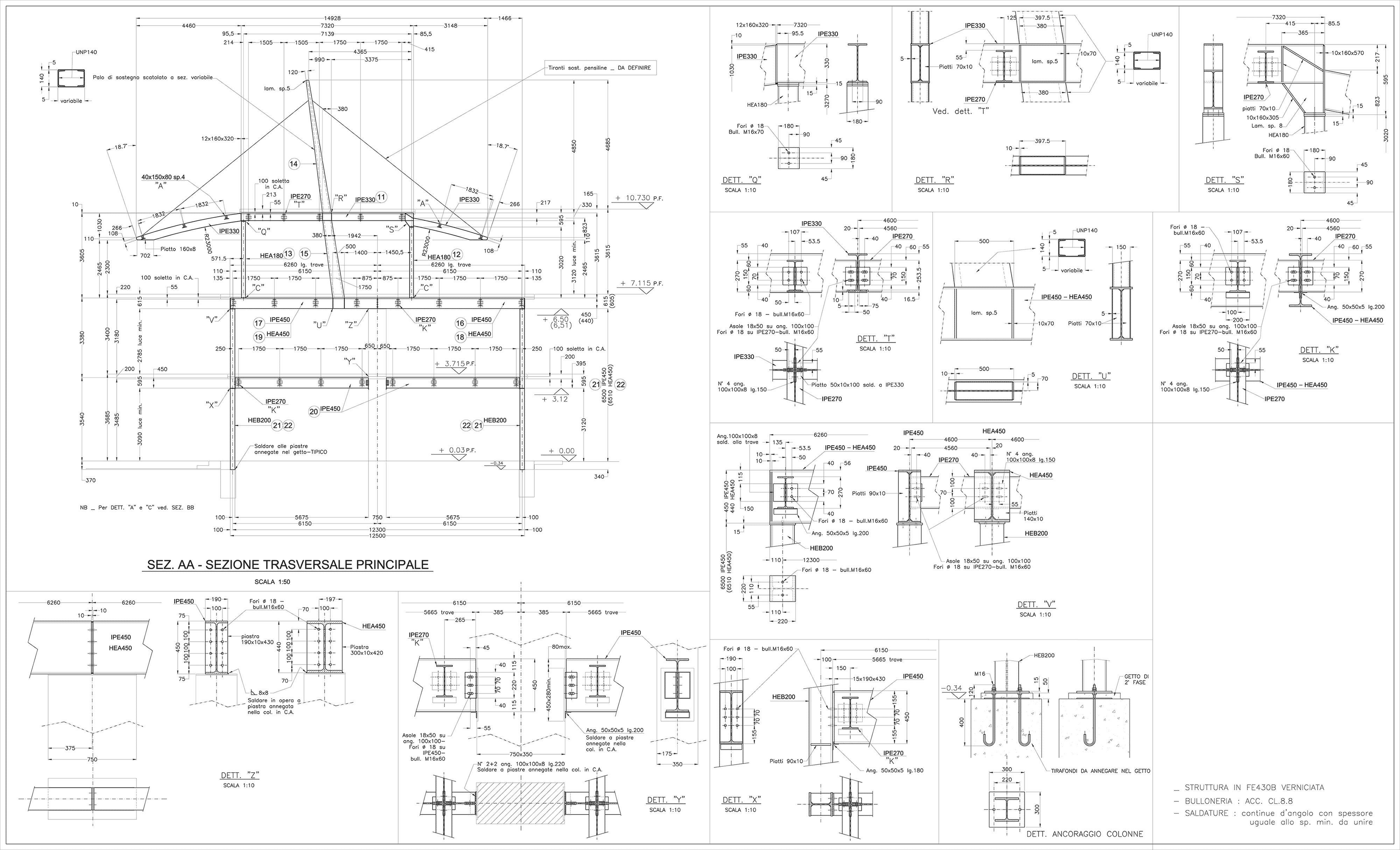 La struttura è prevalentemente in carpenteria metallica tranne per i nuovi pilastri necessari nel nuovo volume citato e altre opere accessorie (setto per scale mobili esterne, vano ascensore e scala di collegamento nelle zona fra il volume vecchio e quello nuovo).
