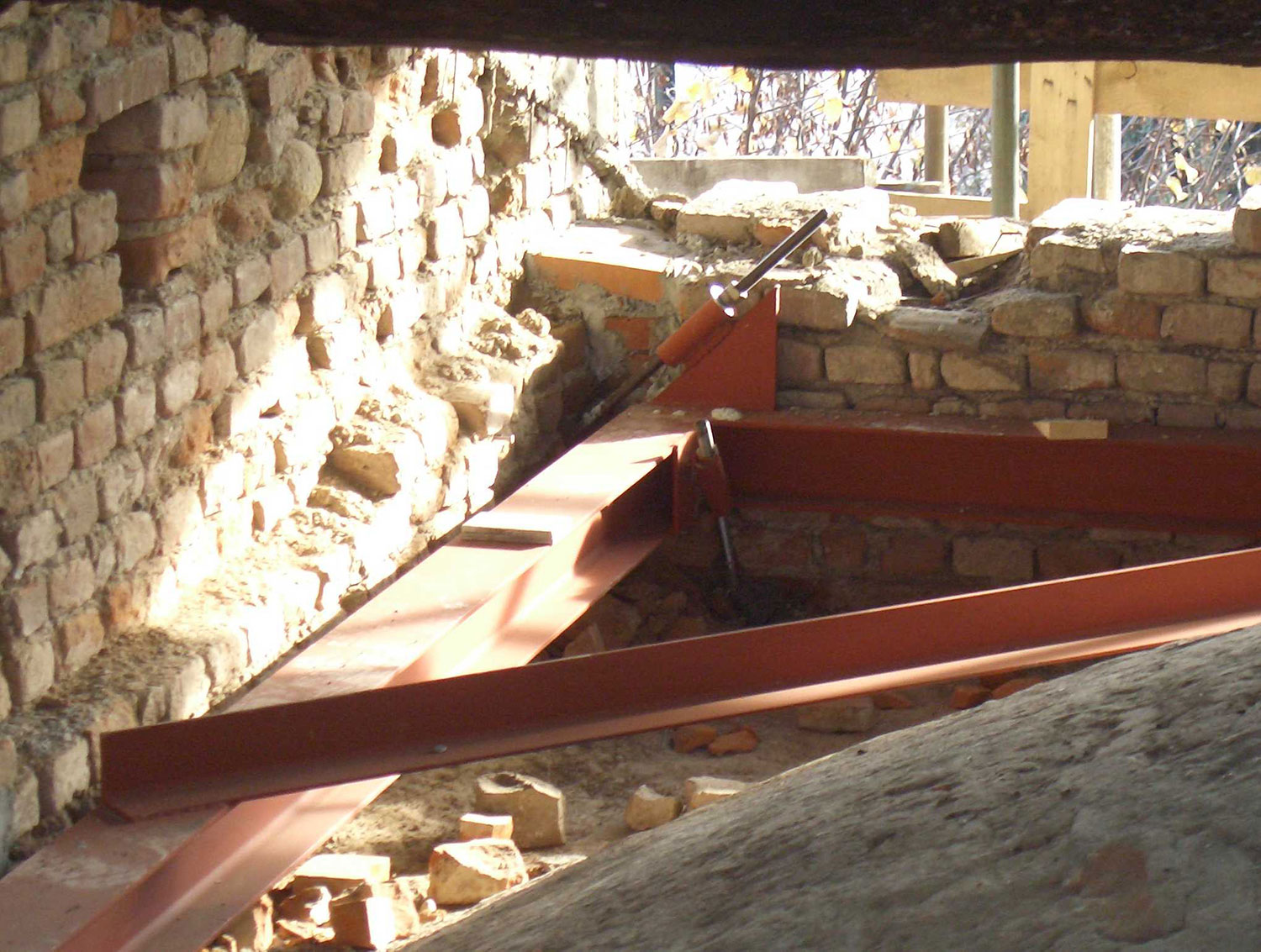 Si tratta infatti di murature costituite essenzialmente da elementi in laterizio misto ad elementi lapidei e da malte di scarsa qualità, sia per composizione che per resistenza. Per questo tipo di murature, mal collegate con gli orizzontamenti, gli effetti dovuti ad incuria, al tempo o ad eventi eccezionali avrebbero potuto creare condizioni di dissesto legate sia al comportamento fuori piano delle pareti - come effetto globale (ribaltamento), o locale (espulsione del paramento esterno) - sia al comportamento nel piano delle pareti.