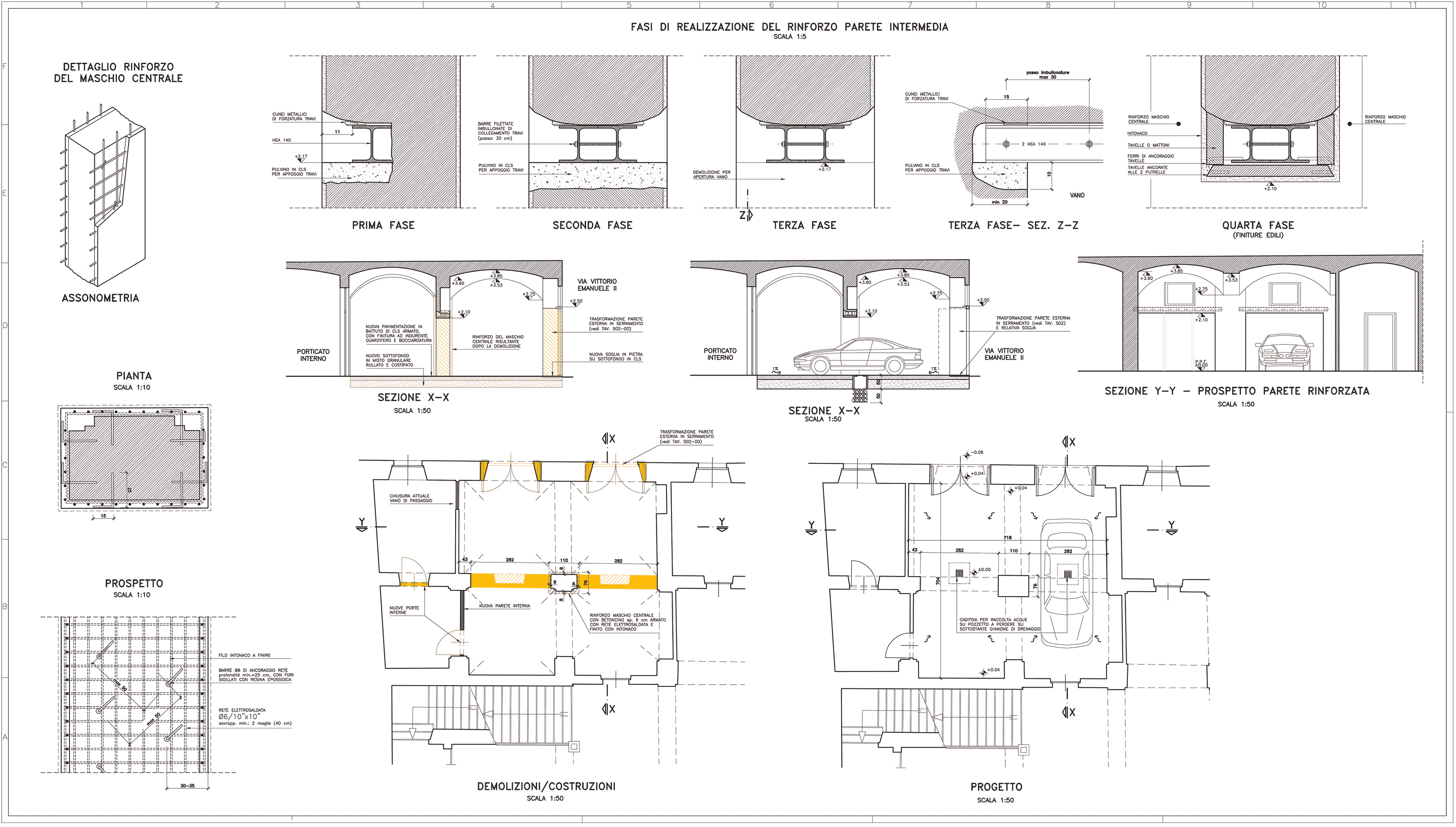 Schizzi per lo studio dell'ancoraggio di un tirante alla parete del nuovo vano ascensore