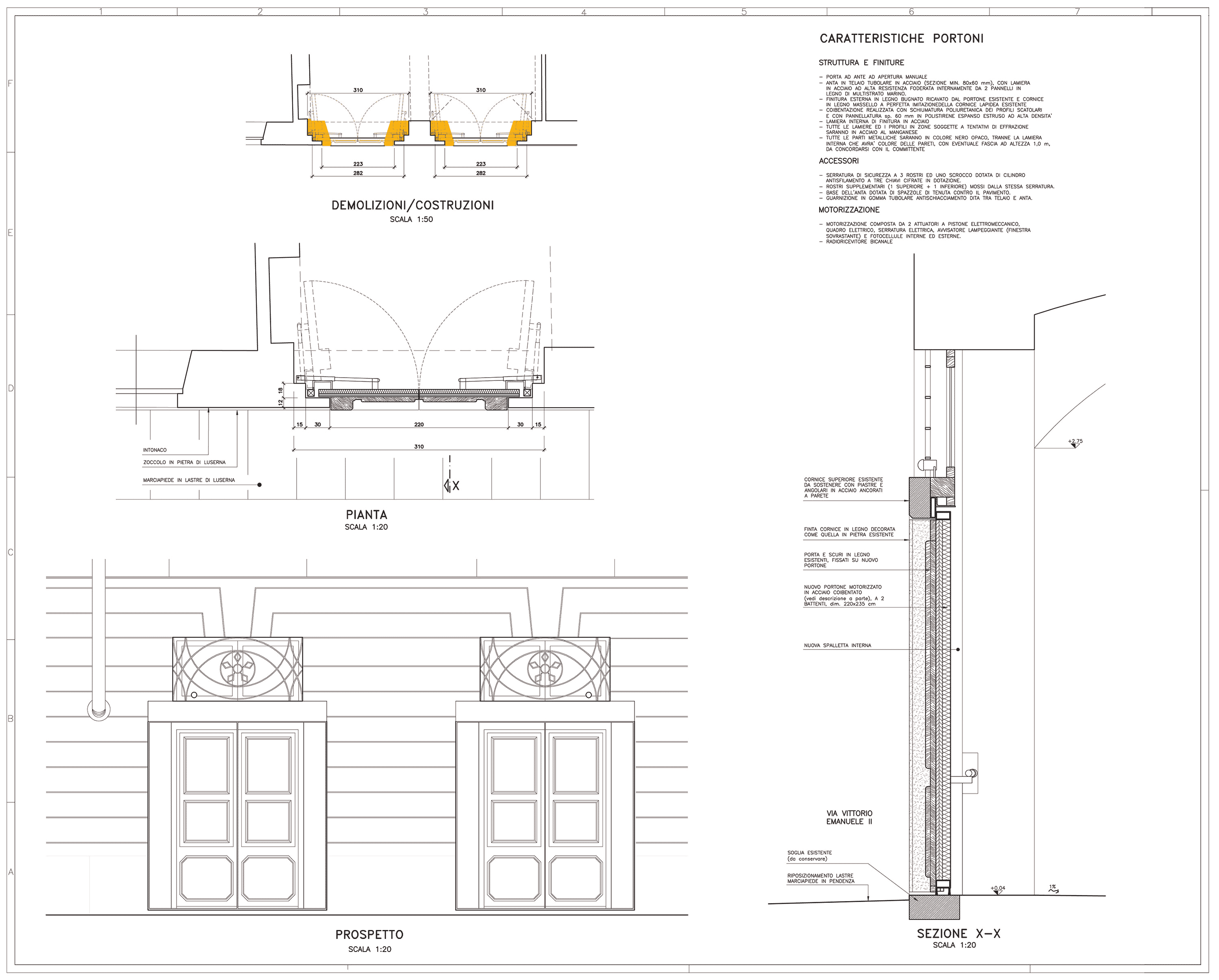 Progetto per l'inserimento di nuovi portoni automatici che non modifichino l'aspetto della facciata principale