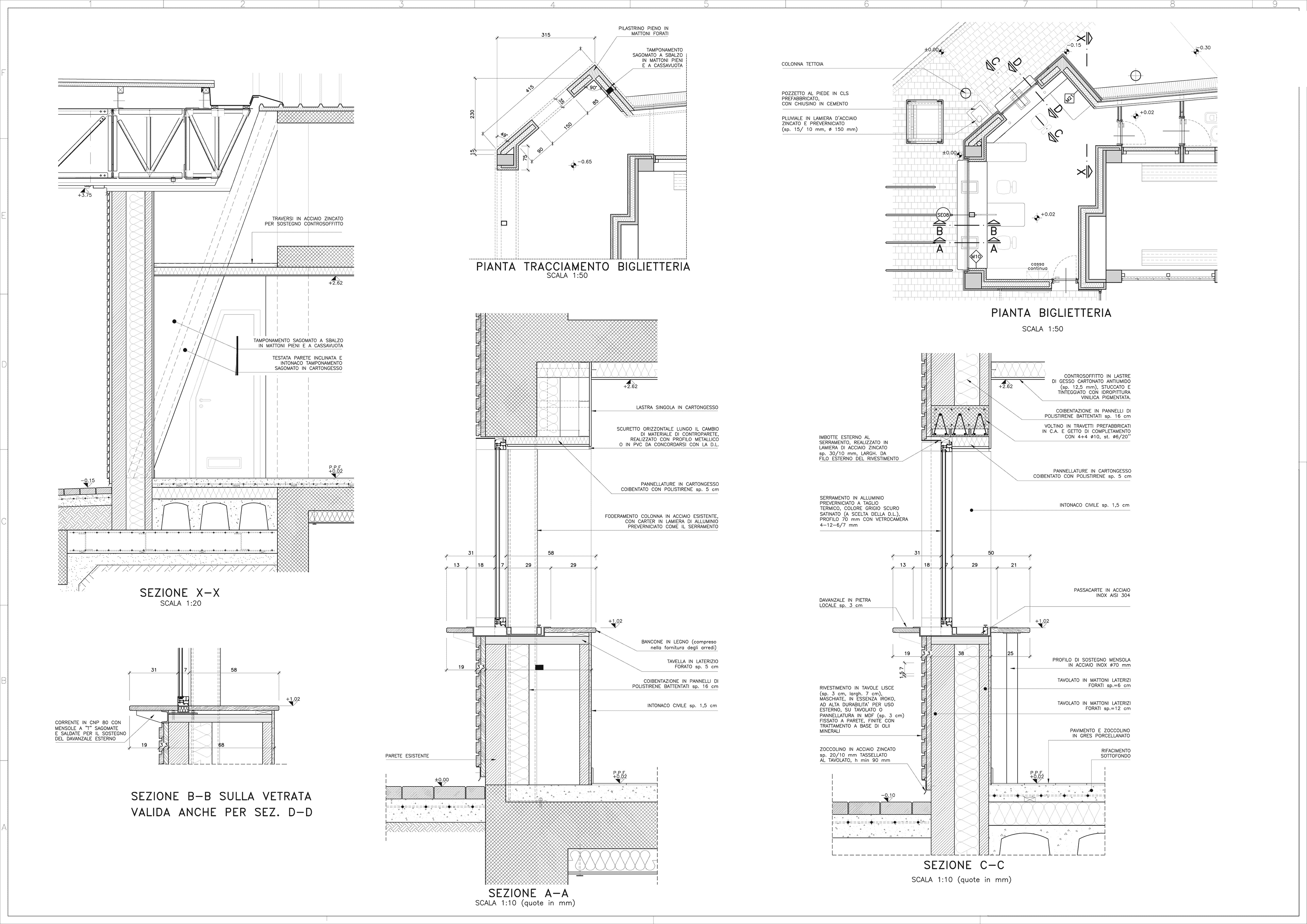Dettaglio della biglietteria, della nuova tettoia e del portale